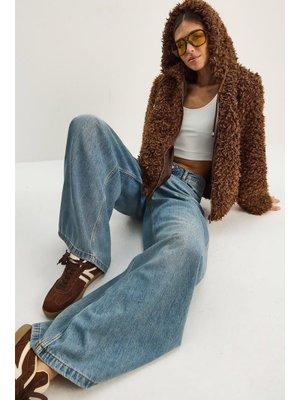 Bianco Lucci Kahverengi Kapüşonlu Astarlı Teddy Mont