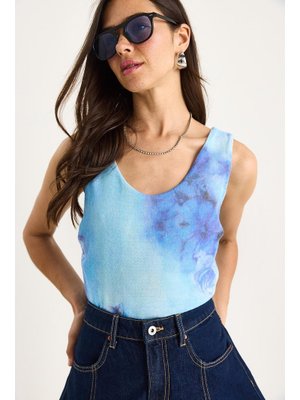 Bianco Lucci Gök Mavisi Desenli Kalın Askılı Dijital Baskılı Regular Yazlık Örme Bluz