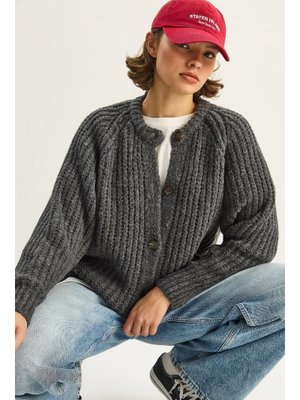 Bianco Lucci Antrasit Kalın Örgü Bisiklet Yaka Triko Hırka