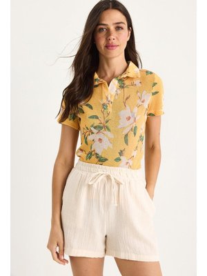 Bianco Lucci Sarı Polo Yaka Desenli Dijital Baskılı Regular Yazlık Örme Bluz
