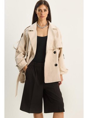 Bianco Lucci Krem Aller Detaylı Kuşaklı Cepli Astarlı Trençkot
