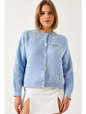 Bianco Lucci Bebe Mavisi Yakası Taşlı Şardonlu Triko Hırka