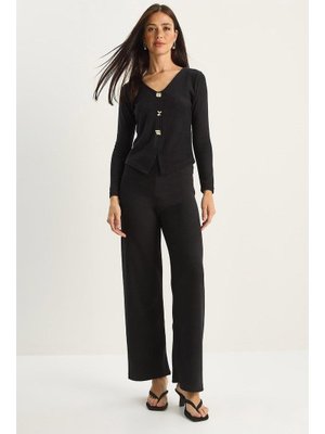 Bianco Lucci Siyah V Yaka Düğme Aksesuarlı Selanik Alt Üst Takım
