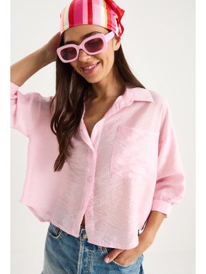 Bianco Lucci Şeker Pembe Yarım Kollu Tek Cep Detaylı Gömlek