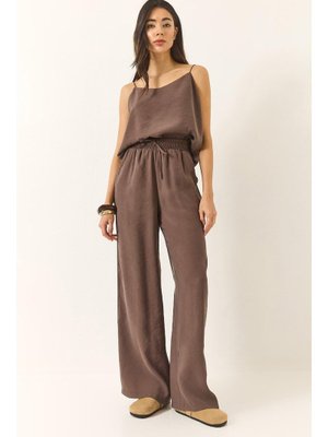 Bianco Lucci Kahve Askılı Dokuma Modal Bluz Pantolon Alt Üst Takım