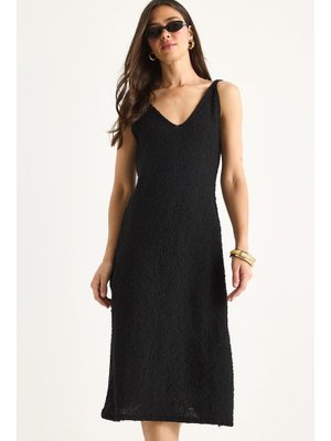 Bianco Lucci Siyah V Yaka Askılı Yazlık Triko Elbise