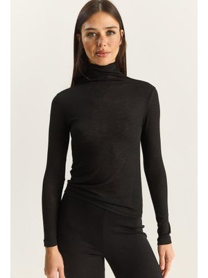 Bianco Lucci Siyah Yarım Balıkçı Yaka Modal Ultra Hafif Bluz