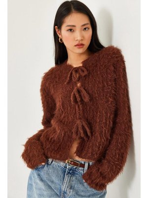 Bianco Lucci Kahve Önden Bağlamalı Saçaklı Hırka