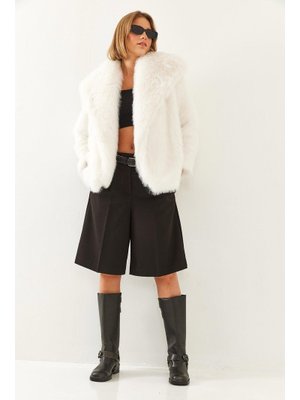 Bianco Lucci Beyaz Yakalı Astarlı Premium Kürk
