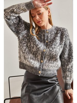 Bianco Lucci Antrasit Düğmeli Şardonlu Triko Hırka