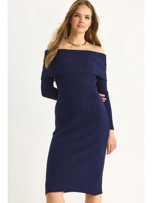 Bianco Lucci Lacivert Fitilli Madonna Yaka Triko Elbise