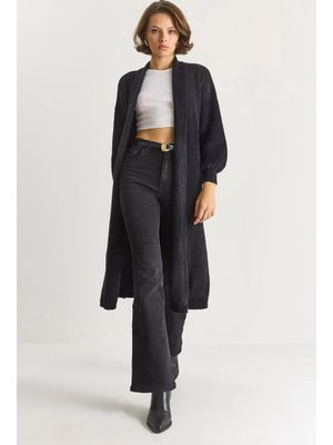 Bianco Lucci Siyah Şal Yaka Yumuşak Dokulu Sakallı Uzun Triko Yumoş Hırka