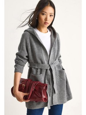 Bianco Lucci Antrasit Kapüşonlu Şal Yaka Kuşaklı Hırka
