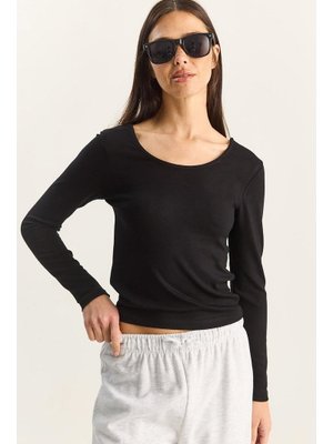 Bianco Lucci Siyah Ultra Soft U Yaka Bluz