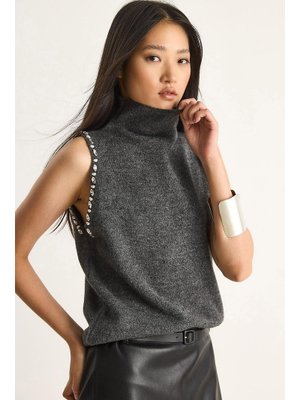 Bianco Lucci Antrasit Taş Detaylı Yarım Balıkçı Yaka Triko Bluz