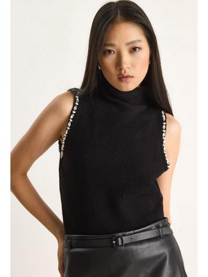 Bianco Lucci Siyah Taş Detaylı Yarım Balıkçı Yaka Triko Bluz