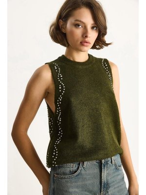Bianco Lucci Haki Taş İşlemeli Triko Bluz