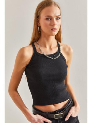 Bianco Lucci Siyah Askılı Kaşkorse Bluz