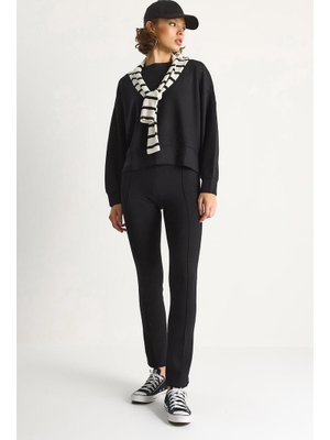 Bianco Lucci Siyah Yumuşak Dokulu Bisiklet Yaka Oversize Sweat Pantolon Viskon Dalgıç Takım