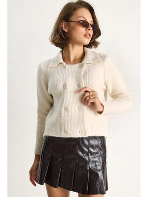 Bianco Lucci Taş Polo Yaka Düğmeli Yumuşak Hırka