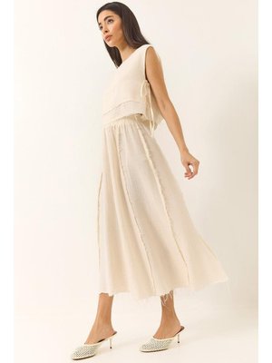 Bianco Lucci Taş Beli Lastikli Etek Yandan Bağlama Detaylı Crop Müslin Alt Üst Takım