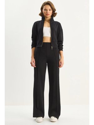 Bianco Lucci Siyah Yumuşak Dokulu Modal Dik Yaka Hırka Bol Pantolonlu Takım