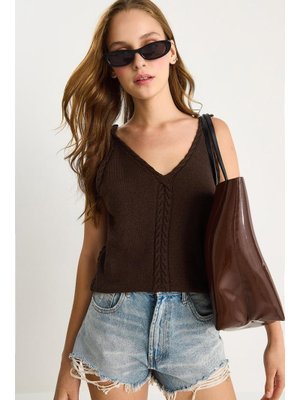 Bianco Lucci Acı Kahve Örgü Detaylı Triko Bluz
