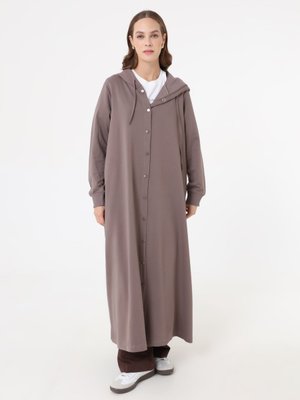 Benin Kapüşon Detaylı Çıtçıtlı Spor Kap / Pardesü Vizon Kahve