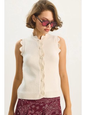Bianco Lucci Krem Dantel Örgü Desenli Kaplama Düğmeli Triko Yelek