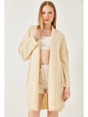 Bianco Lucci Ekru Geniş Kesim Fitilli Triko Hırka