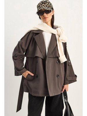 Bianco Lucci Zeytin Aller Detaylı Kuşaklı Cepli Astarlı Trençkot