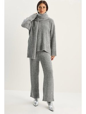 Bianco Lucci Gri Yumuşak Dokulu Rahat Kesim Atkılı Triko Takım