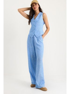 Bianco Lucci Mavi Yüksek Bel Pantolonlu Yelekli Astarlı Alt Üst Takım