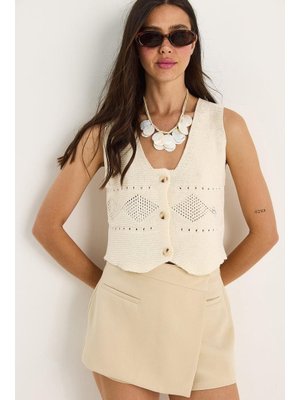 Bianco Lucci Ekru V Yaka Kalın Askılı Triko Yelek