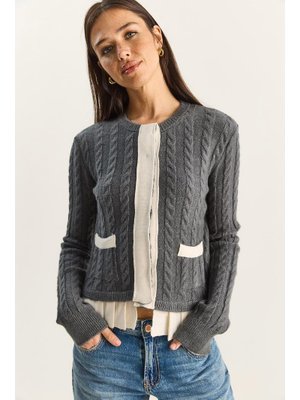 Bianco Lucci Füme Pile Detaylı Saç Örgü Triko Kazak
