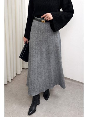 Salih Çelebi Antrasit Balıksırtı Desenli Kaşe Etek