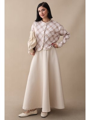 InStyle Ekose Desen Ceket Etek Bej Takım