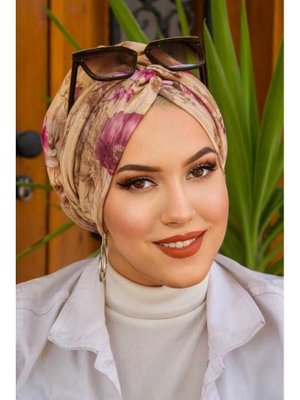 AİŞE TESETTÜR Camel Vişne Desenli Burgu Bone