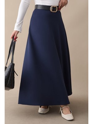 InStyle Kloş Beli Lastikli Scuba Lacivert Etek