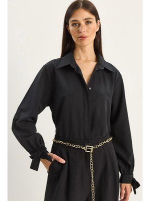 Bianco Lucci Siyah Manşet Detaylı Poplin Gömlek