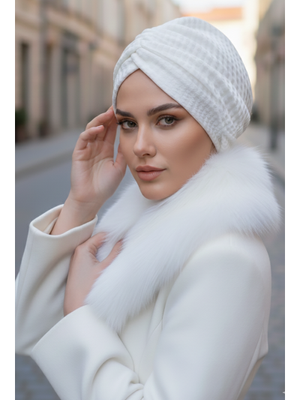 AİŞE TESETTÜR Kırık Beyaz Büzgülü Salaş Bone