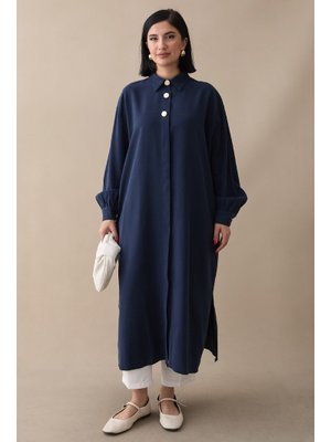 InStyle Gömlek Yaka Keten Lacivert Salaş Tunik