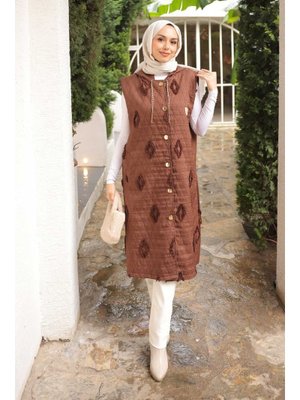 İmaj Butik Kahverengi Kapüşonlu Kapitone Yelek