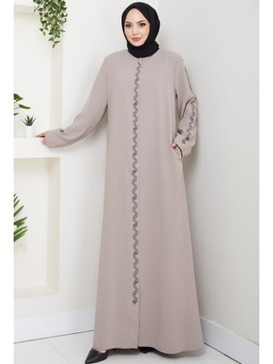 Hafsa Mina Bej Zikzak Taşlı Ferace
