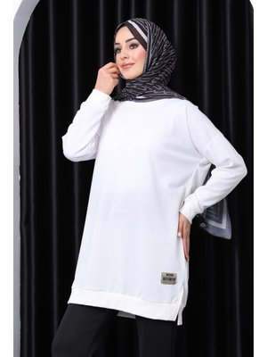 İmaj Butik Ekru Bisiklet Yaka Armalı Tunik