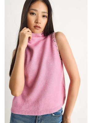 Bianco Lucci Pembe Taş Detaylı Yarım Balıkçı Yaka Triko Bluz