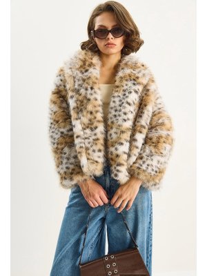 Bianco Lucci Ekru Bej Şal Yaka Astarlı Premium Suni Kürk Ceket