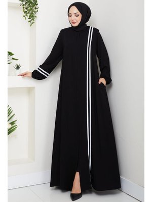 Hafsa Mina Siyah Şerit Detaylı Ferace