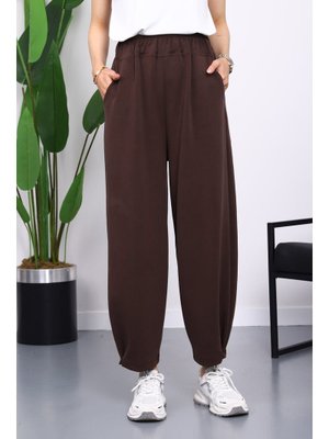 İmaj Butik Kahverengi Bel Lastikli Cepli Pantolon