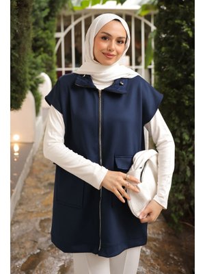 İmaj Butik Lacivert Yakası Ve Beli Stoper Lastikli Cepli Scuba Yelek